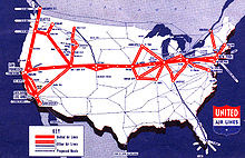 United's early route system, formed by connecting U.S. air mail routes, operated east-to-west along a transcontinental route from New York City via Chicago and Salt Lake City to San Francisco, as well as north-and-south along the West Coast. The early interconnections during this era became the basis of major United hubs in Chicago and San Francisco, followed later by additional hubs in Denver and Washington, D.C. These four cities remain United's principal hubs to this day.